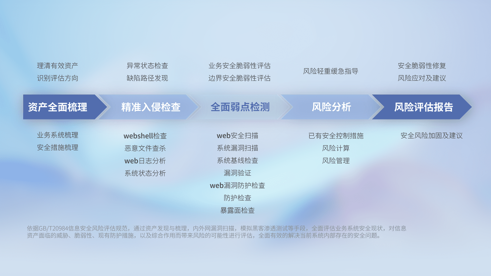 针对客户行业特性,以“专业的安全服务+多厂商联合解决方案”提供专属的一站式安全管理服务,帮助客户全面感知网络空间威胁,基于识别、检测、分析、防护、监测、响应的服务理论模型,从方案咨询、集成交付、评估验证、优化加固、运维运营,致力于为客户提供完整的闭环管理式安全服务。以实战经验为客户打造高抵御风险的安全体系,帮助客户发现威胁、对抗威胁、处置威胁,不断积累安全对抗能力,持续保障数字化安全。